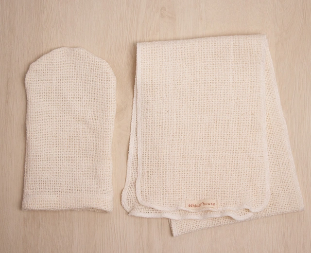 石鹸不要。水だけで汚れを落とす、綿100%ボディタオル/ミトン