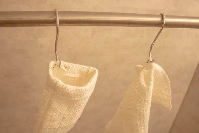 タグがあると便利ですが、外側にあると身体に触れる部分の摩擦になるため、ミトンは内側にタグを取り付けました。S字フックなどにかければ自然とミトンの口が開いて、乾きやすいつくりとなっております。