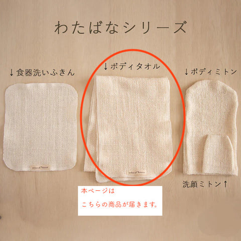 本商品は、綿花100%なのに、水だけで適度な皮脂が落とせる、新感覚のボディケア素材。水だけで洗うので、石鹸やボディソープによる界面活性剤による洗いすぎを避けることができます。